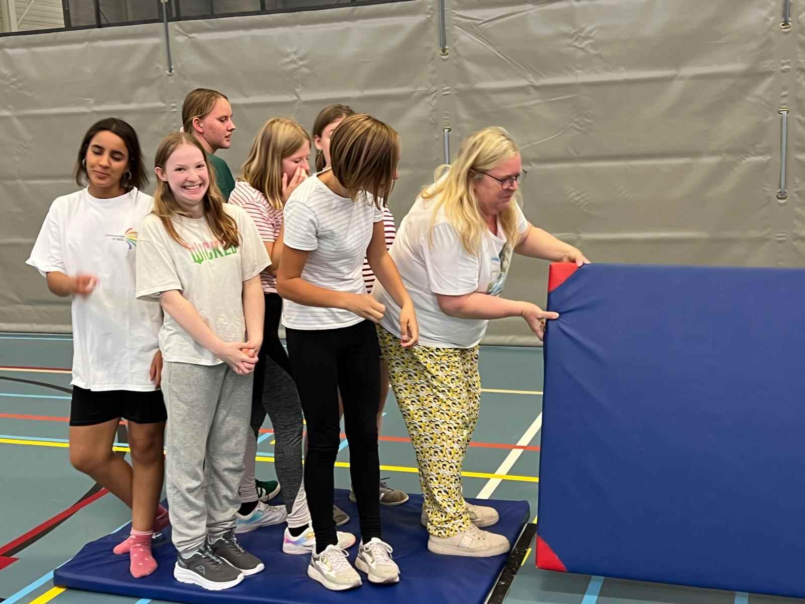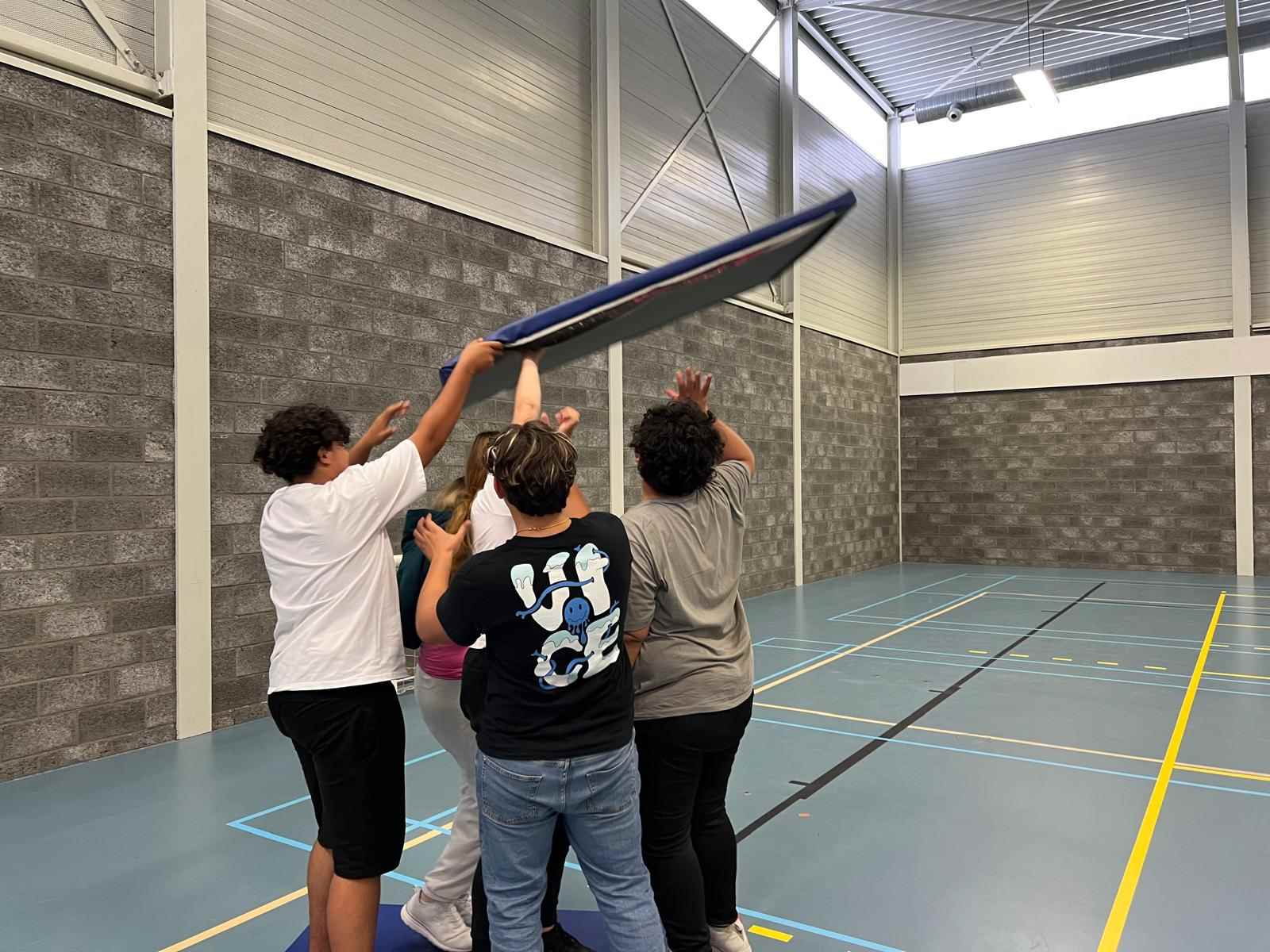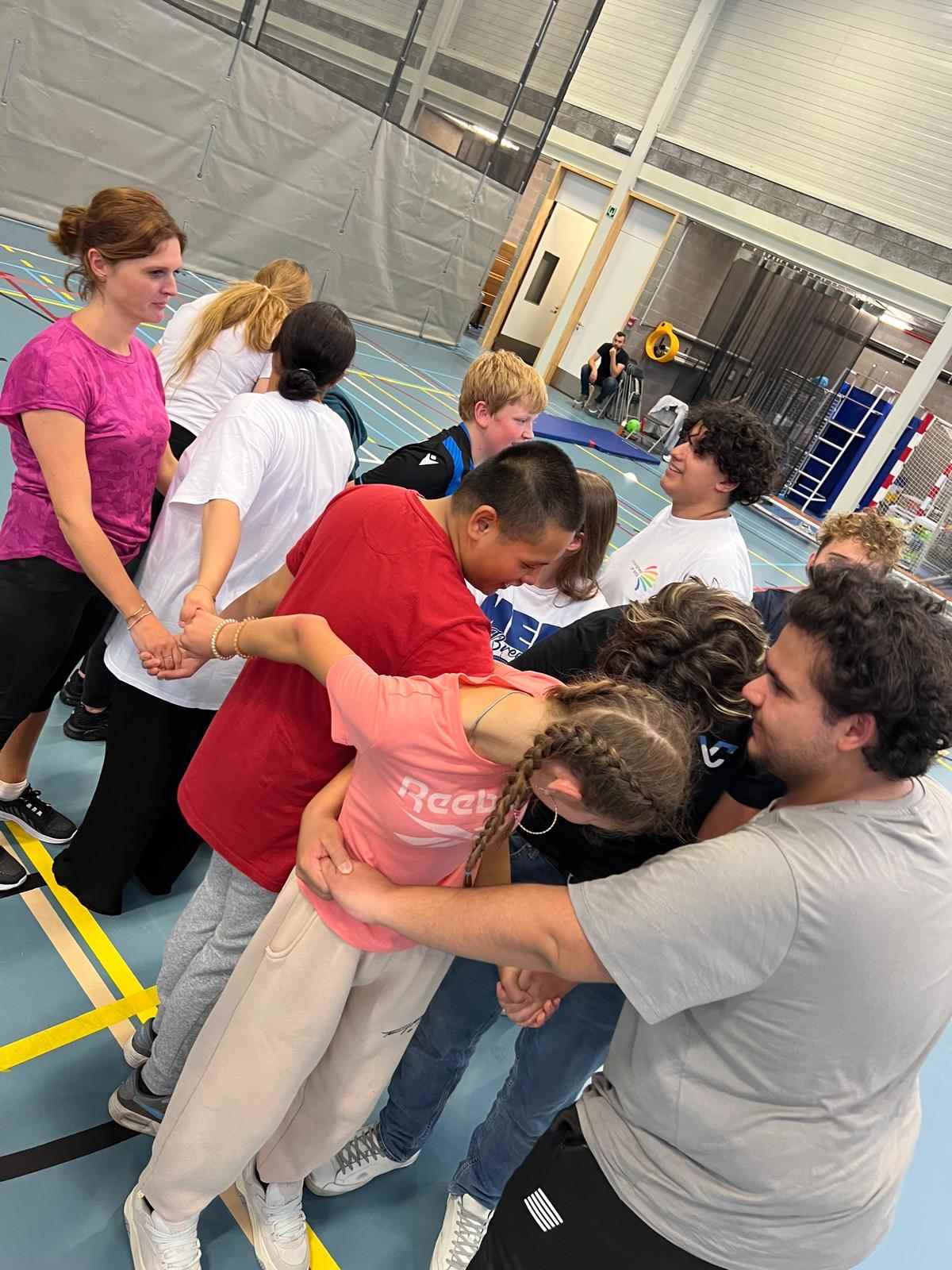 Ons 4e, 5e en integratiejaar gingen naar de sporthal en maakten er kennis met verschillende balsporten én spelletjes waarbij ze moesten samenwerken.