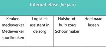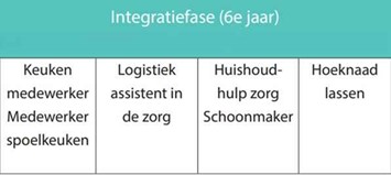 In de integratiefase kom je 14 lesuren op school en doe je minstens 24 uur werkervaring op in een regulier bedrijf.